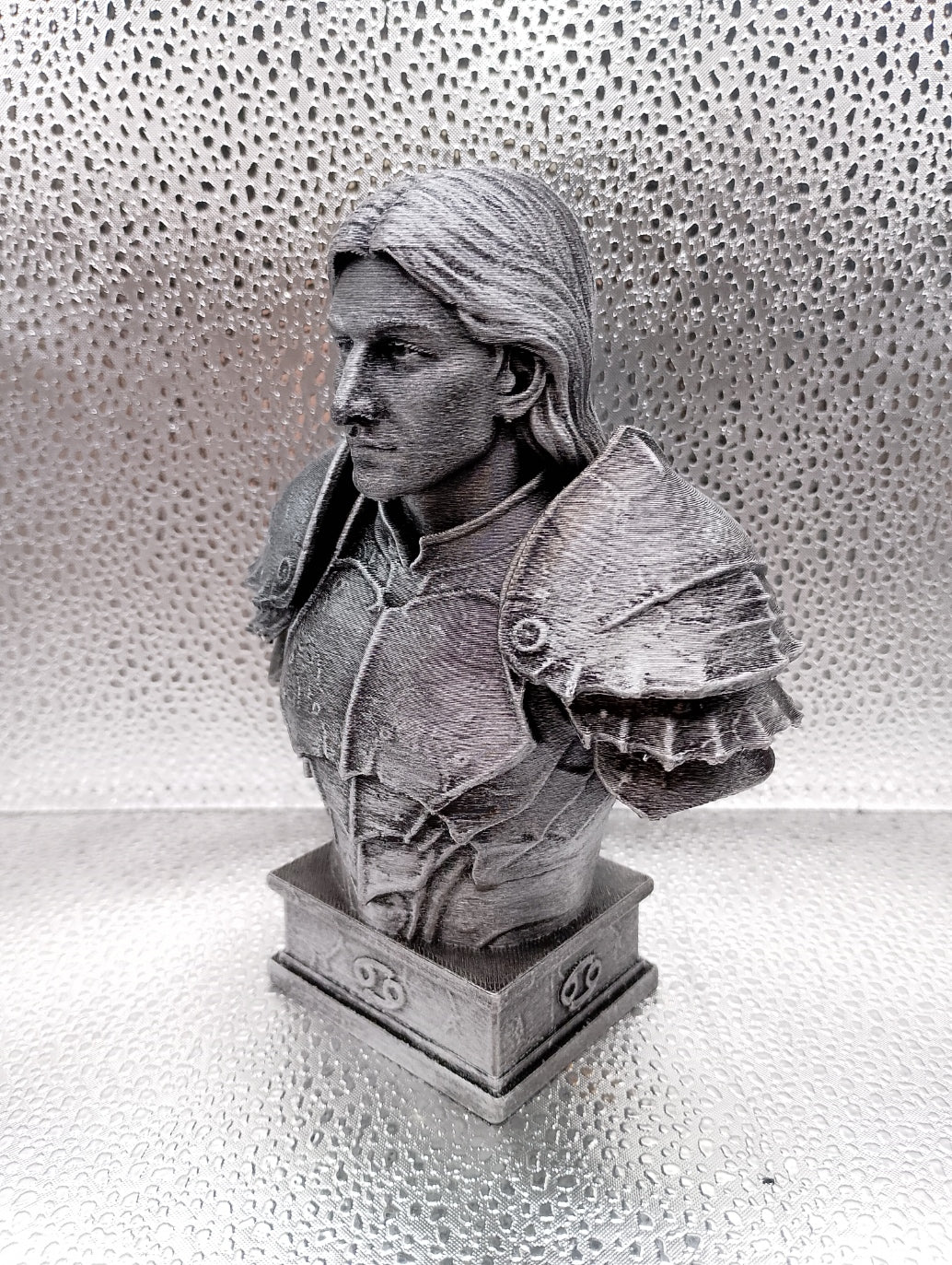 Produced using high-precision 3D printing, this bust features finely layered textures that give it a stone-like, sculptural finish, reminiscent of ancient statues carved to honour gods and guardians. The smooth facial structure contrasts beautifully with the heavier armour plating, symbolising the balance between sensitivity and strength that defines Cancer. Subtle surface detailing catches the light, revealing depth and craftsmanship from every angle.